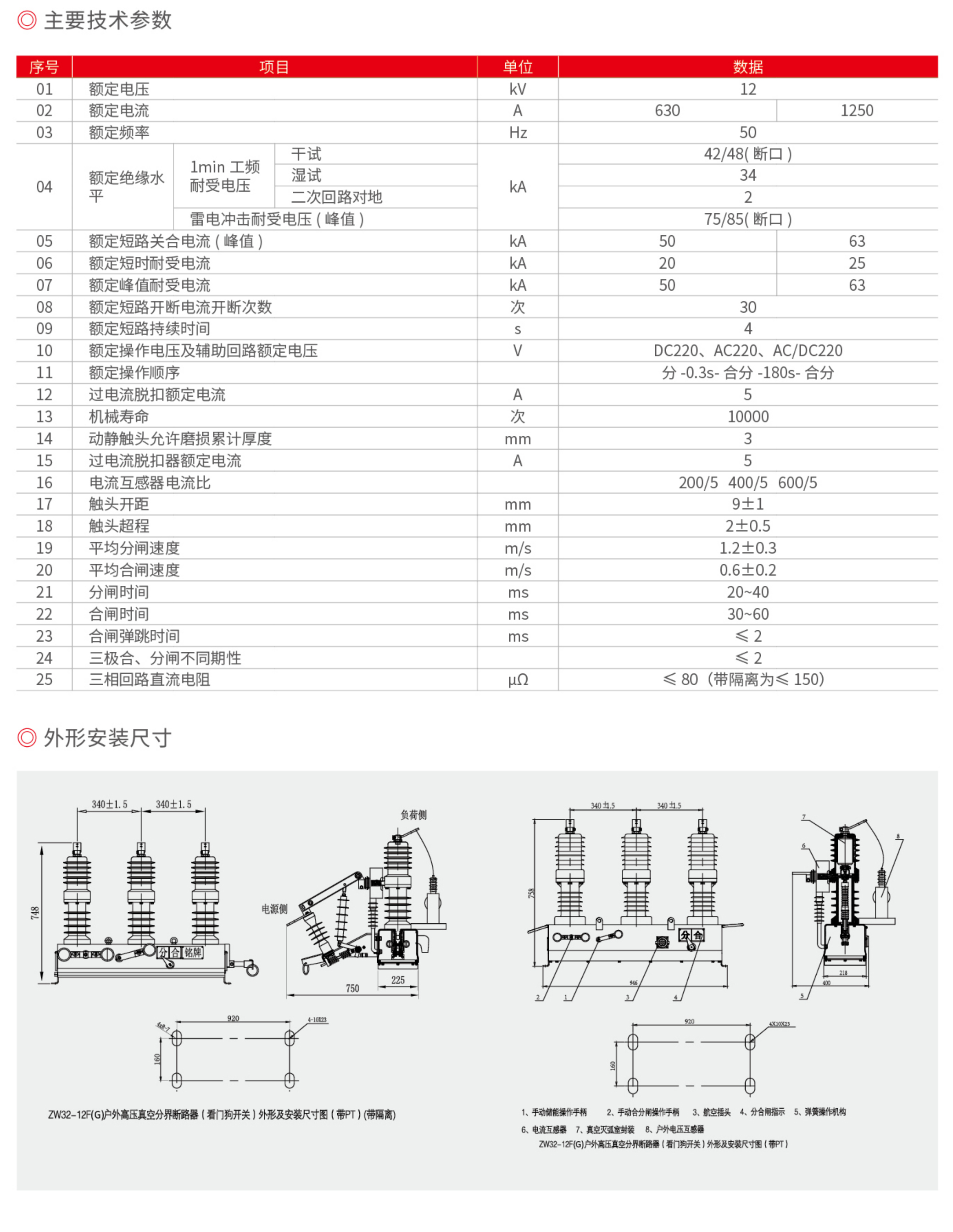 ZW20-12F 一二次融合户外高压真空断路器